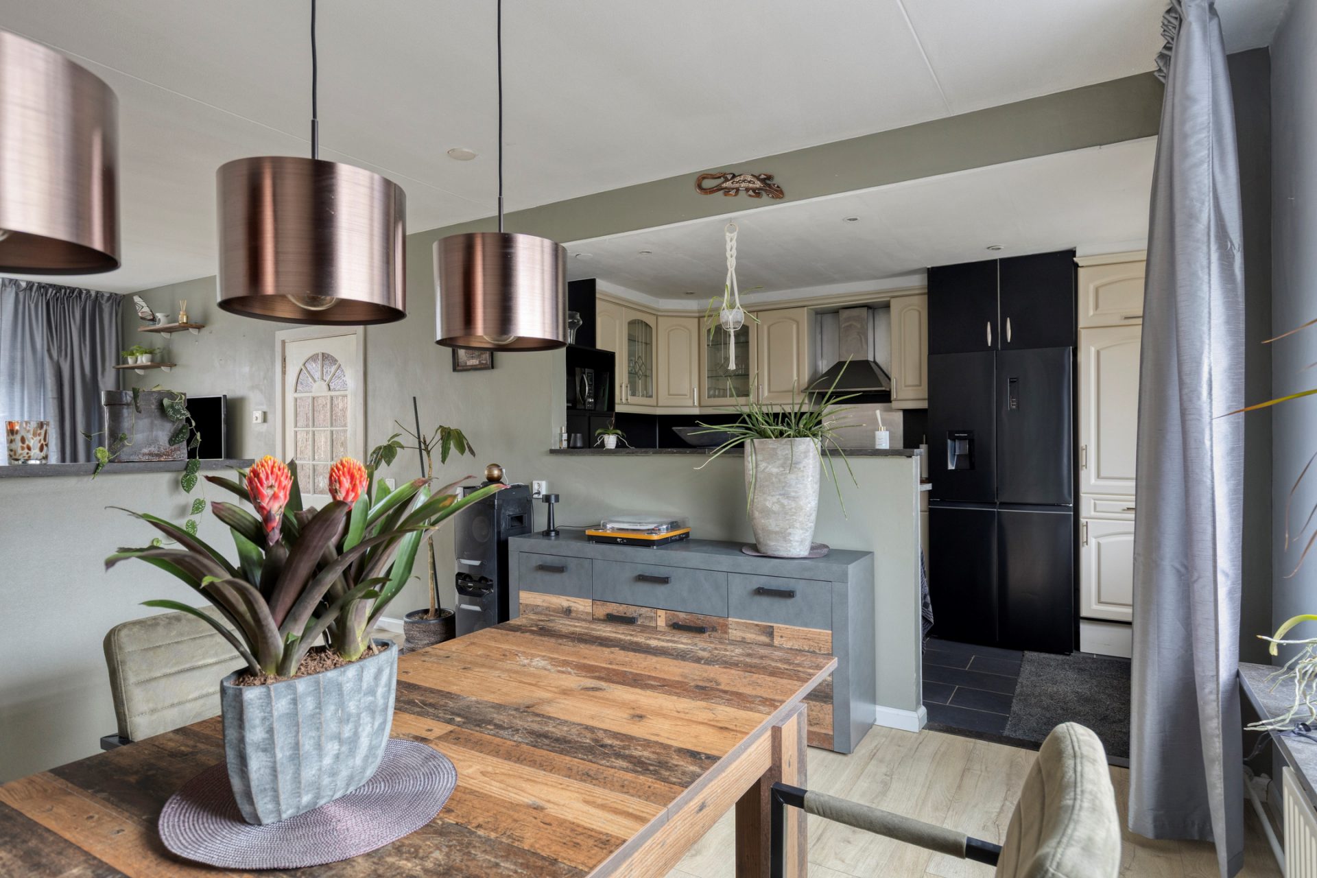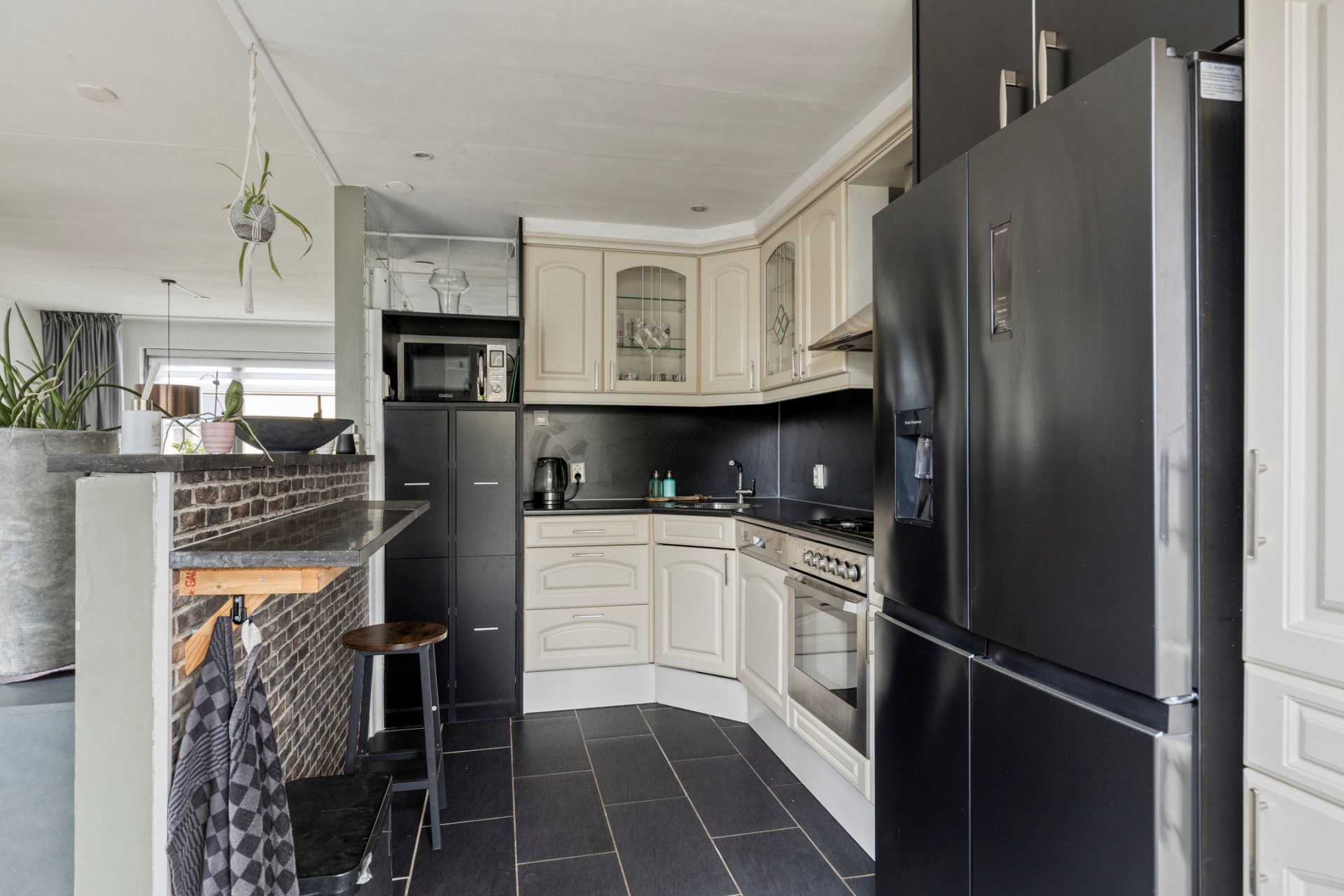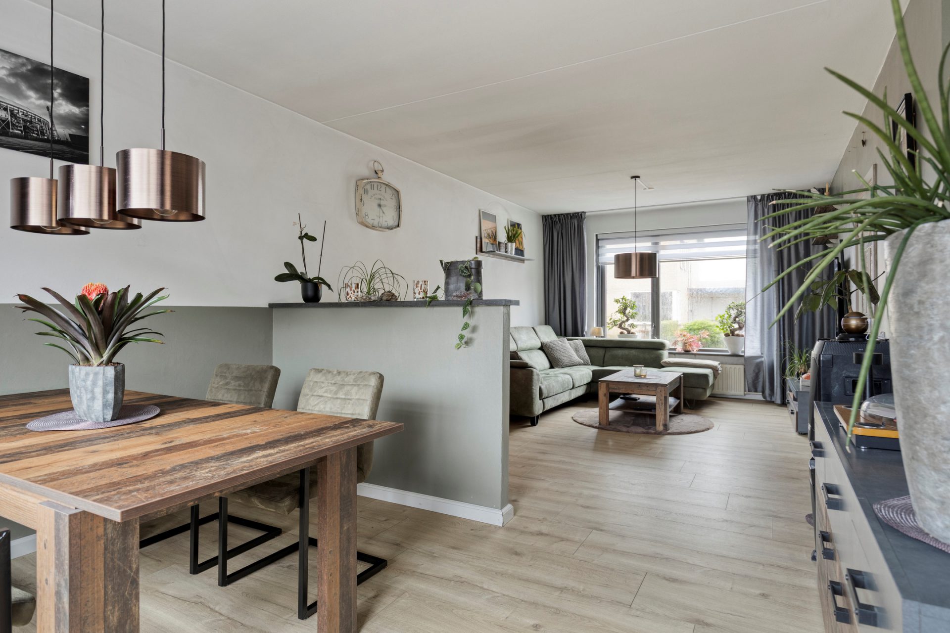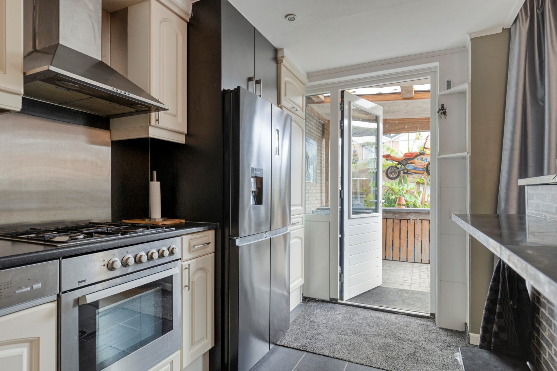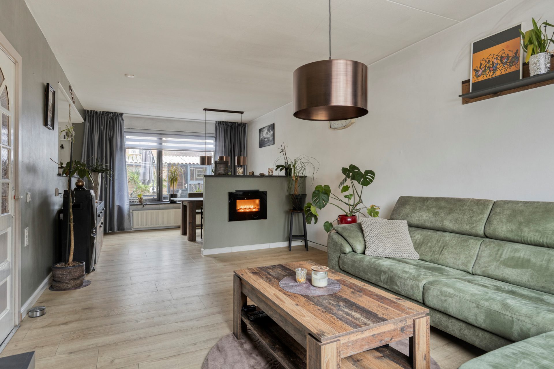 Deze woning is met haar praktische indeling helemaal afgestemd op dagelijks comfort. Via de hal met toilet bereik je de lichte woonkamer met grote ramen, wat zorgt voor een frisse uitstraling en een fijne sfeer. De halfopen keuken met diverse inbouwapparatuur is gelegen aan de tuinzijde, waardoor je tijdens het koken prettig uitzicht hebt op je eigen achtertuin, terrasoverkapping en berging.