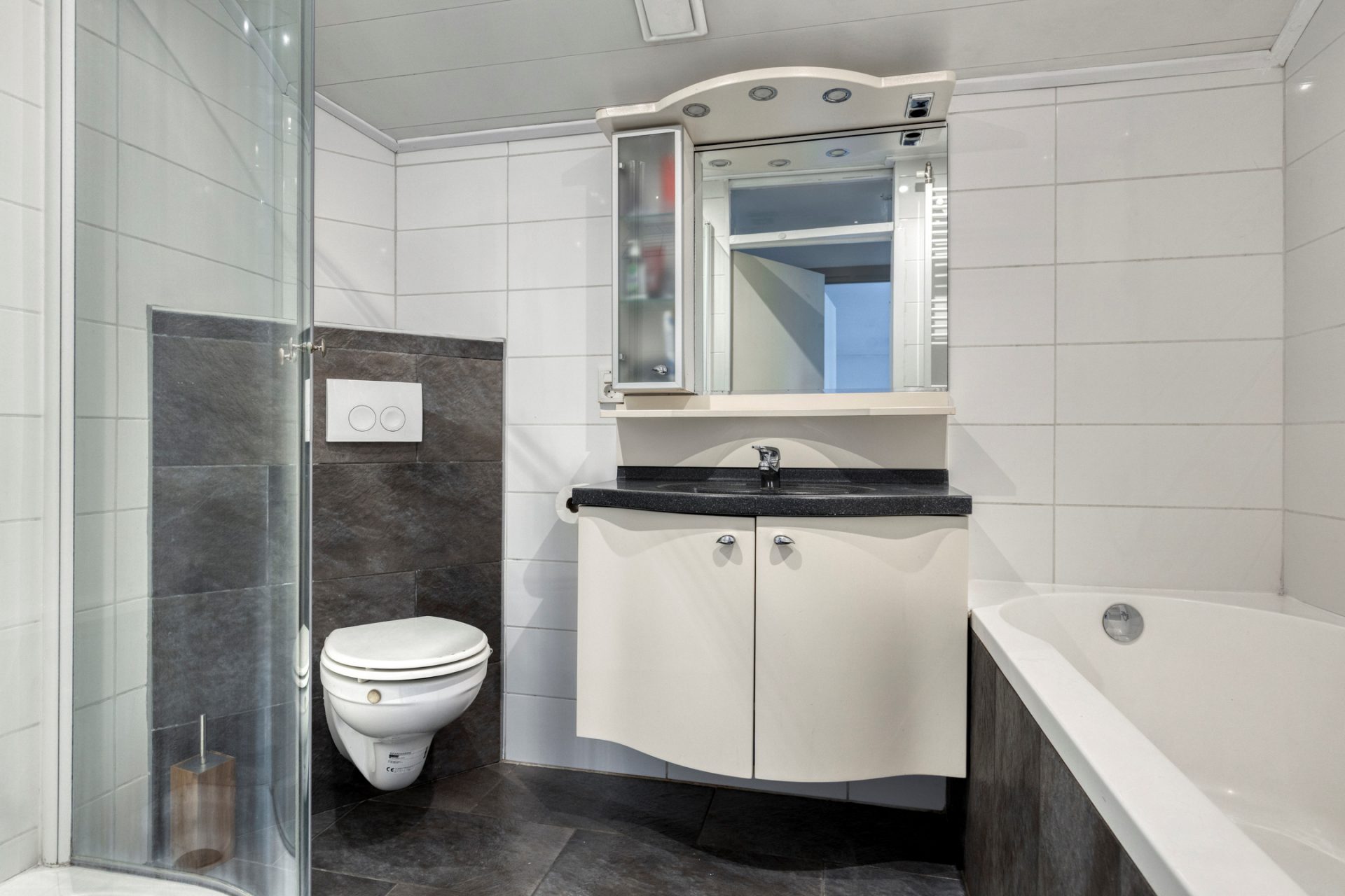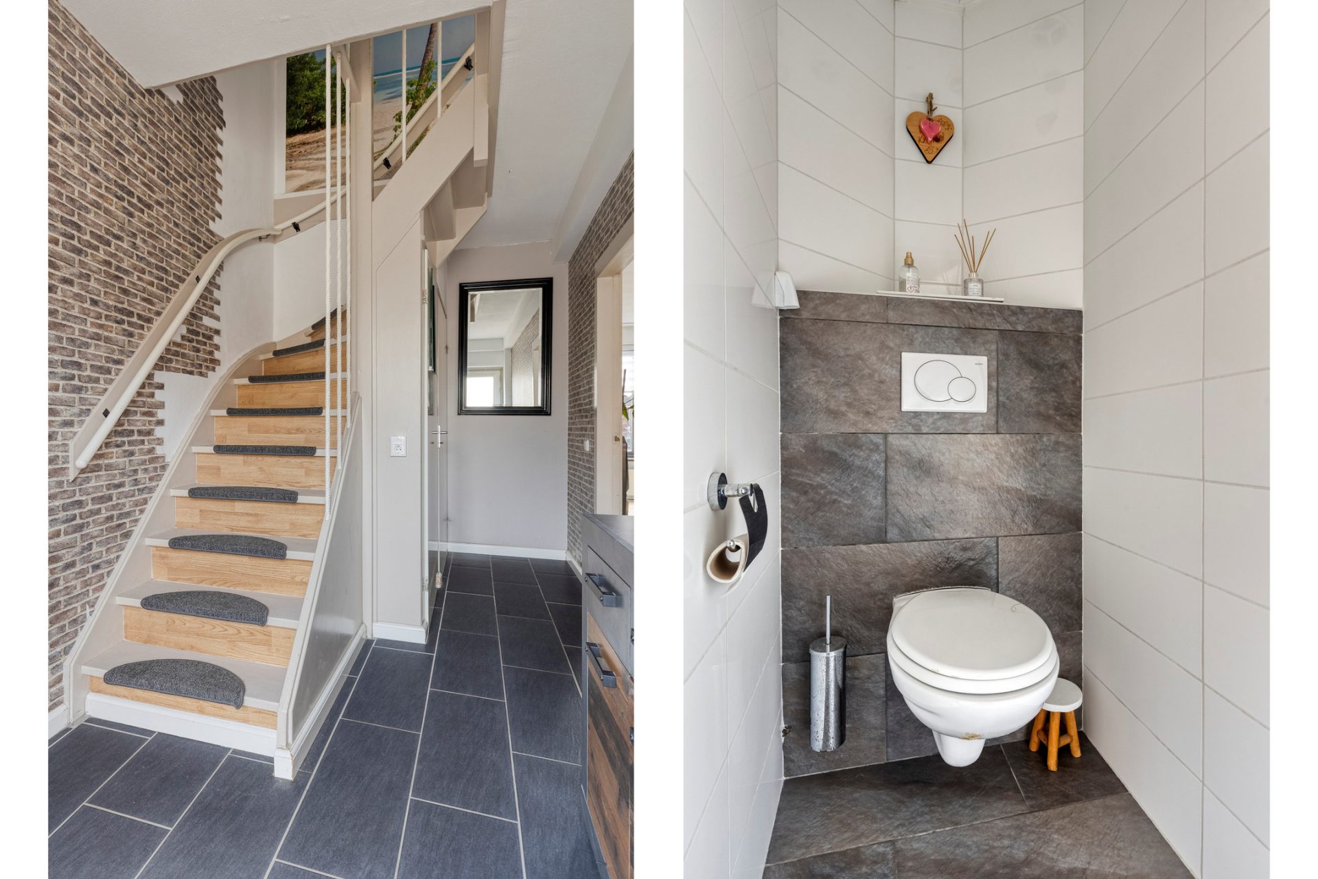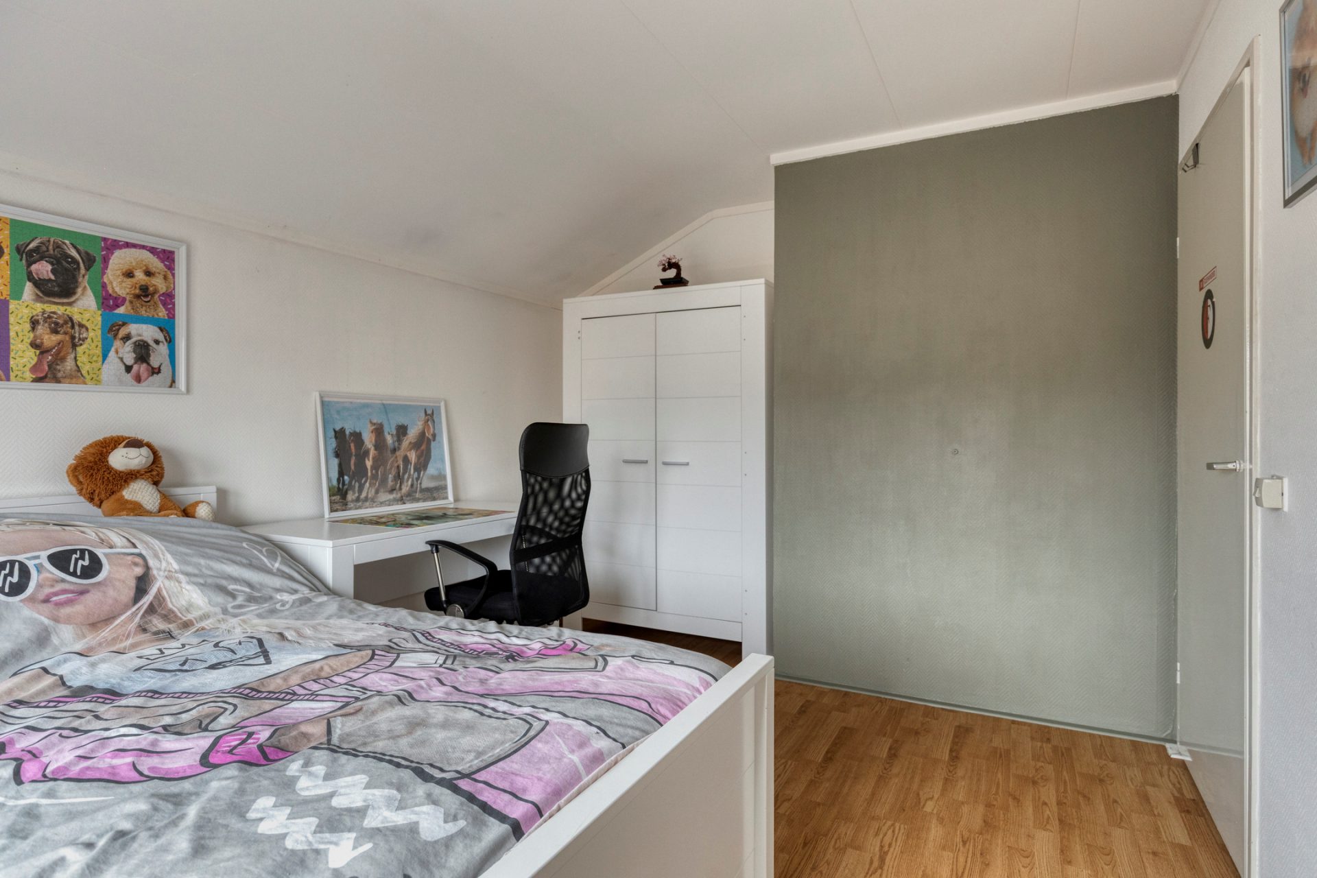 Via de trapopgang, op de verdieping, vind je meerdere slaapkamers, zelfs een 4-tal! Tezamen ruim genoeg voor een jong gezin, thuiskantoor, hobbyruimte en logeerkamer. Ook de badkamer is prettig functioneel ingericht met wastafel meubel, ligbad, douche en 2e toilet. Vooral heel praktisch is, op deze etage, de aanwezige bergruimte met opstelling voor je wasmachine en/of droger.