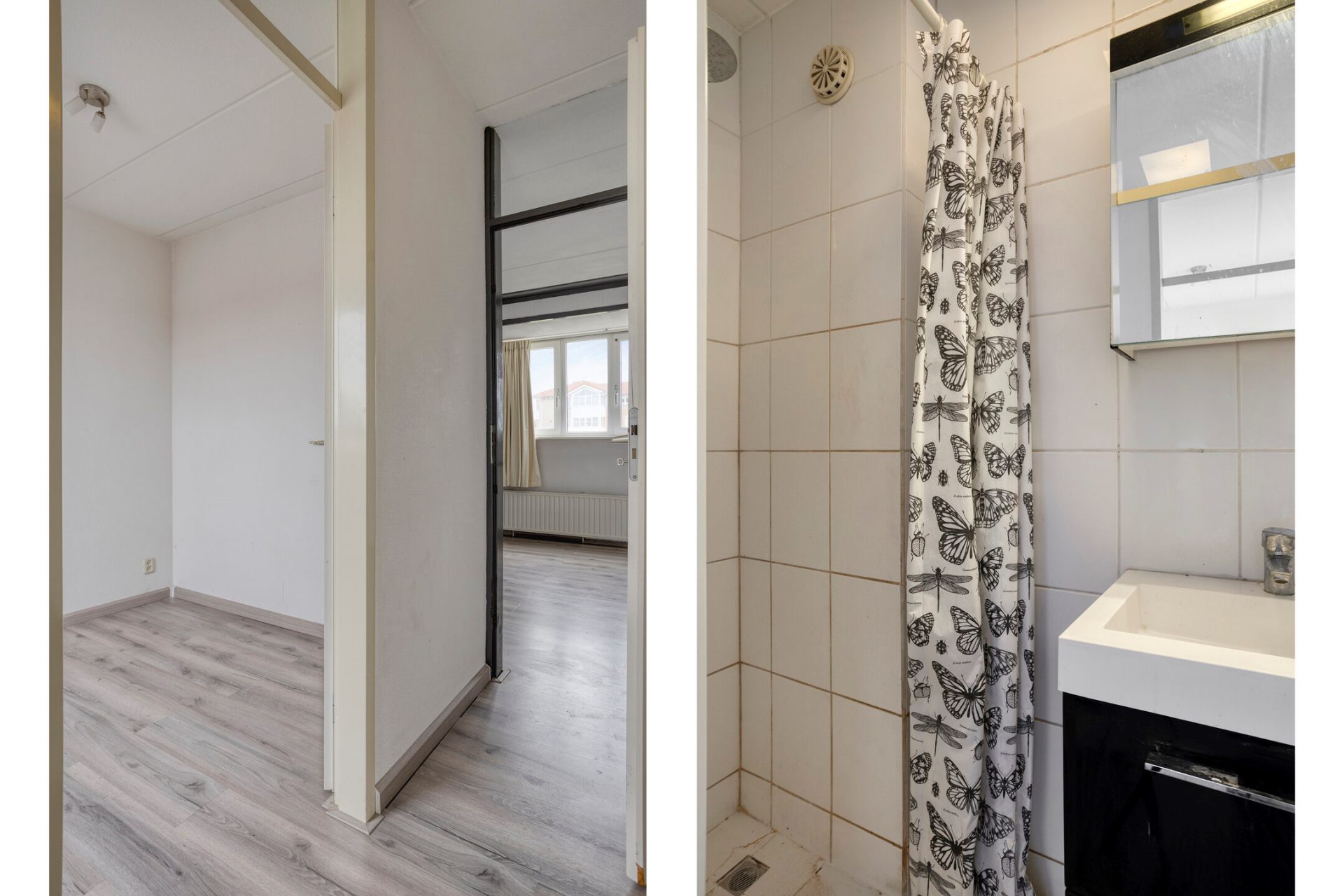 Per trapopgang aangekomen op de 2e verdieping, treft u de overloop met opstelling C.v.-ketel Remeha Calenta (ca.2013). De woning beschikt over 2 slaapkamers: – grootste slaapkamer aan de voorzijde met dakkapel (ca. 4.16 x 3.60) – slaapkamer achterzijde (ca. 3.50 x 2.20) met Velux dakraam. De badkamer is eenvoudig, doch voorzien van een douche en wastafelmeubel. Ook de 2e verdieping is voorzien van een laminaatvloer.